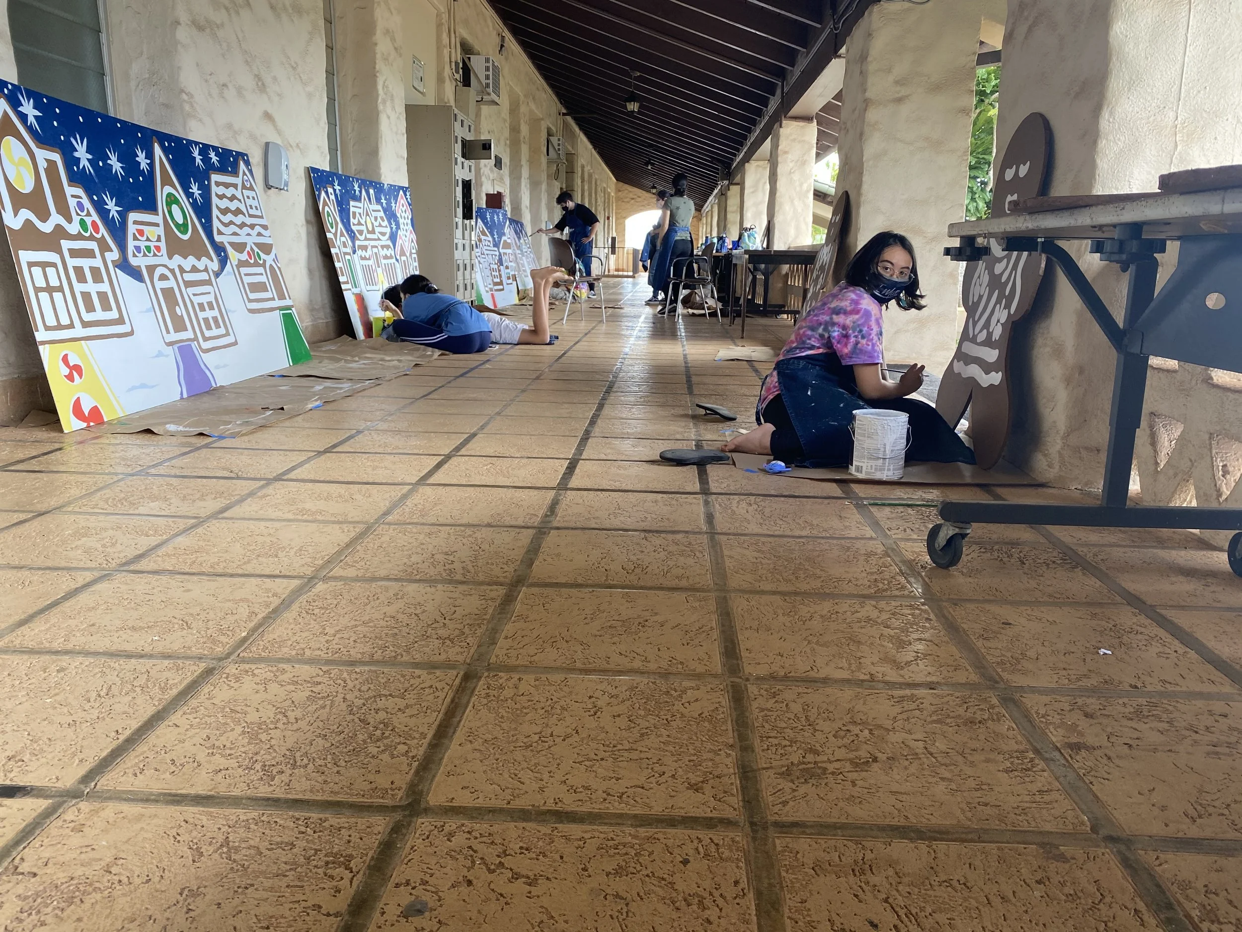 The mural club went to Spalding House to pain fire murals for fire safety and awareness, painted signage for Lā Kūʻokoʻa (Hawaiian Independence Day) and made decorations for a drive by Christmas display during the Pandemic in Dec 2020.