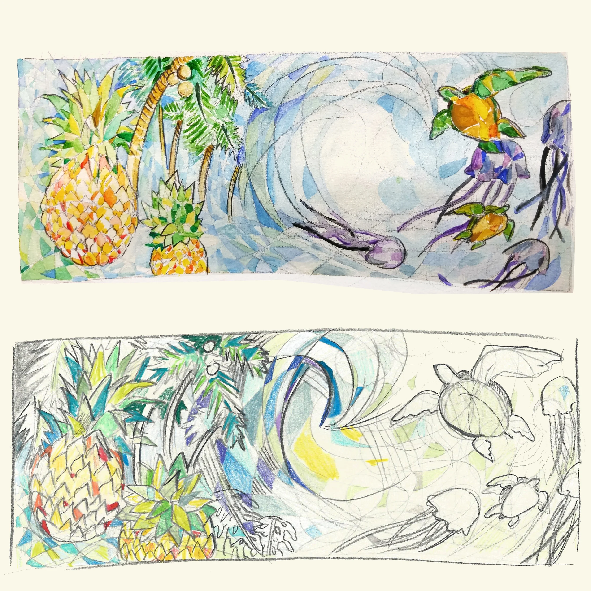 I am pretty proud of this big mural. Beside a few days where someone had to hold the ladder (to make sure I don't get blown off by the wind eek!) I did this mural entirely solo. I've learned a lot from this experience but I think I can safety say now I am an experienced mural painter. Mahalo for looking and I'll be sure to send an invitation to the big opening soon. Please sign up for my mailing list so you don't miss any great events or invites coming up!