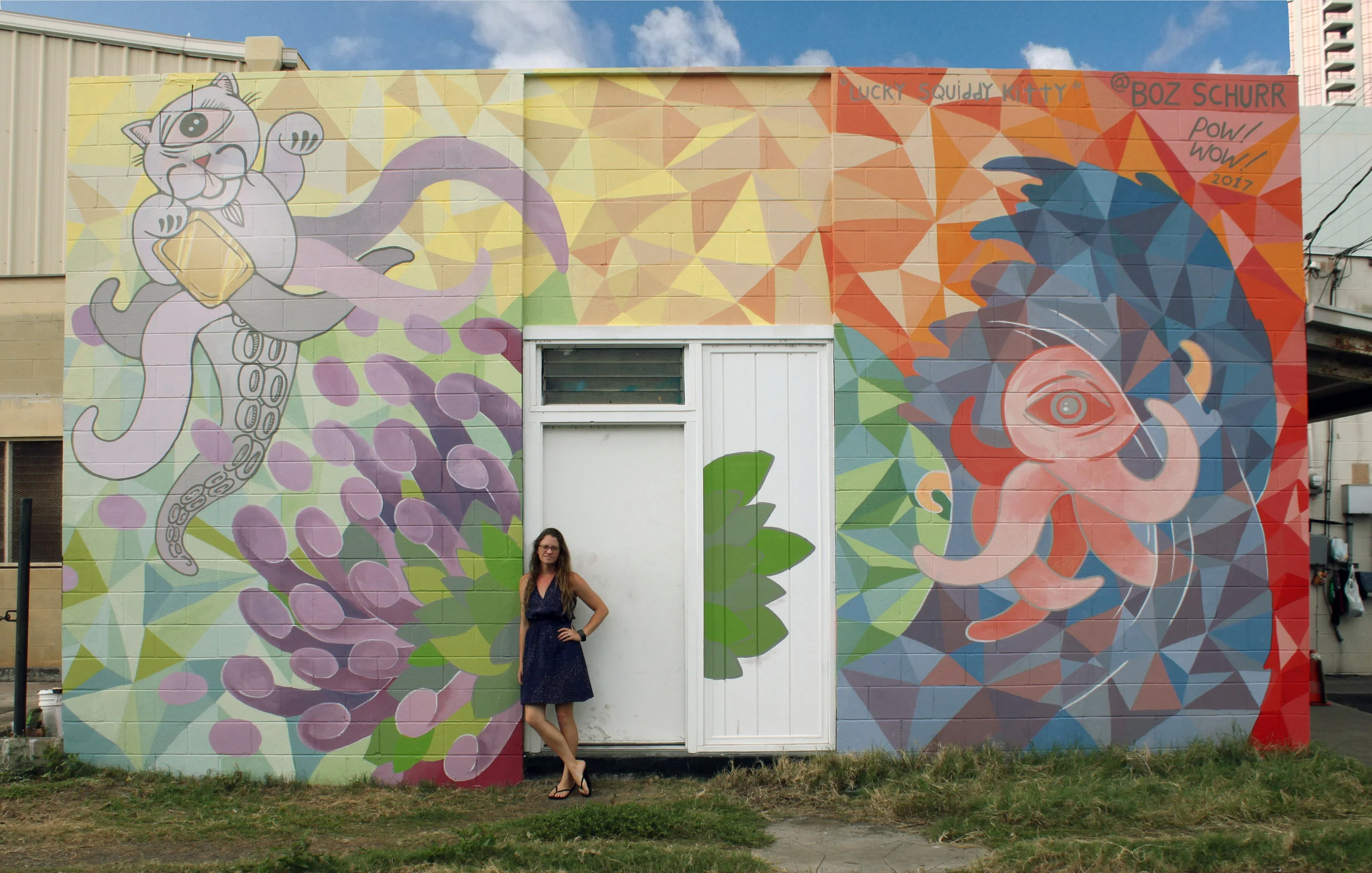 I am so excited to have been included in this year's Pow! Wow! Hawaii! My wall "Lucky Squiddy Kitty" can be found at 524 Kamani st and will be up till February 2018.